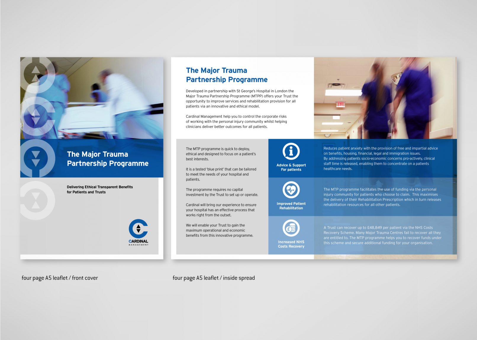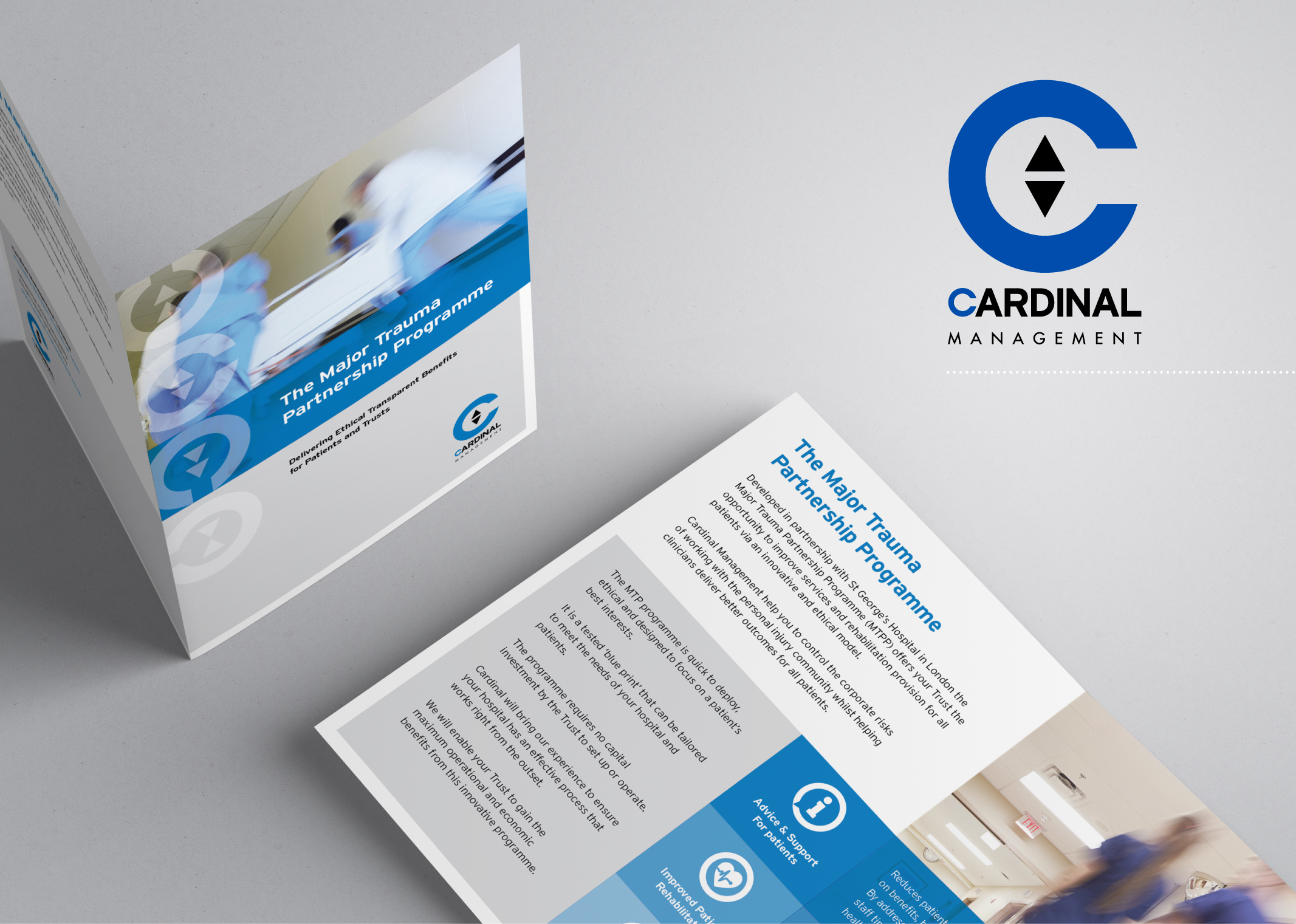 Corporate identity, business stationery and brochure. Cardinal Management works in partnership with a number of NHS Trusts to suppot patients who have suffered complex injuries and who might benefit from advice, support, rehabilitation or guidance.